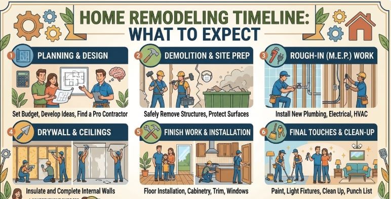 A home remodeling project is a major investment, but understanding the timeline helps make the experience less stressful. From initial planning to final inspection, each stage plays an important role in creating the home you envision.